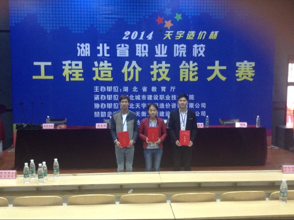本次大赛建筑公司派出了胡珍、陈雨、王丹、孙晓丽为指导老师,孙艳姣(造价1213班)、袁汉军(造价1211班)、黄松杰(造价1212班)三位选手组成的代表队参加比赛。