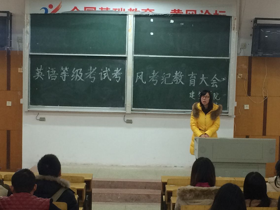 会上张学仁老师带领大家学习了国家《刑法修正案》中新增加的对法律规定的国家考试中出现作弊的相关规定和公司《关于严肃考试纪律和加强考风建设的若干规定》。于晶老师在大会上作重要讲话,一是告知大家三、四、六级的详细考试时间及有关考试要求,二是告诫老员工要以诚实守信的态度对待本次考试,用自己的实际行动塑造建筑学子的形象,三是大家要以良好的心态对待本次考试,把其当作对自己学习的一个检验,客观看待第一次参加英语等级考试是否通过的问题。