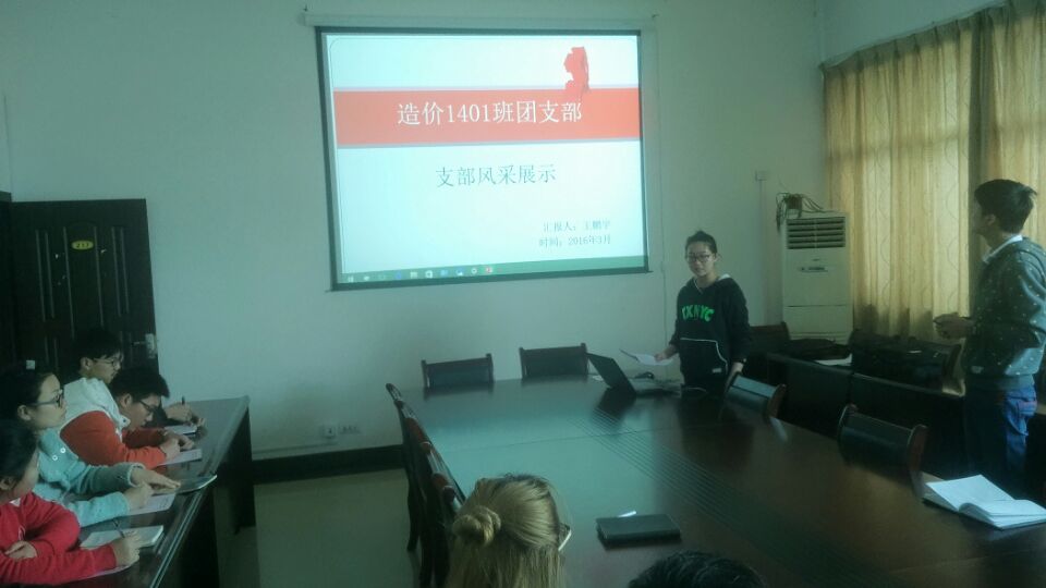3月24日中午12:30,建筑公司关于五四先进团支部的评选汇报会在科技楼217会议室举行。党总支副书记于晶、辅导员老师张学仁、金晓刚以及员工会主席团成员作为评委,员工会主要员工干部、14级和15级各班班长、团支书参加了此次汇报会。