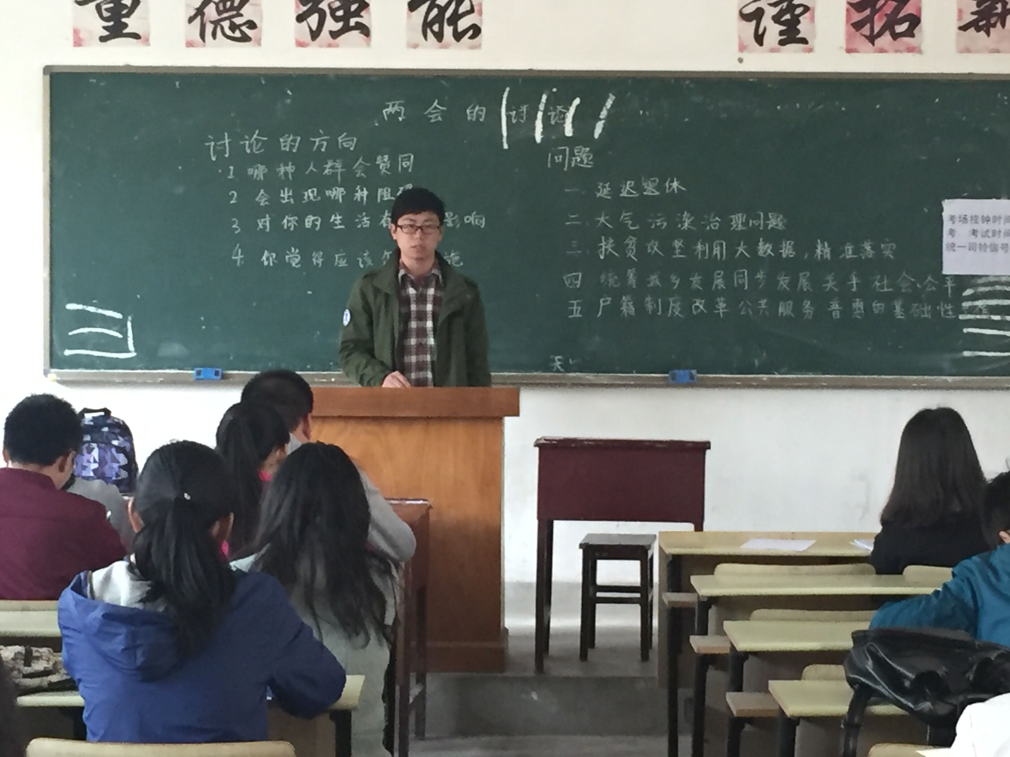 最后由冯诗琦对此次大会进行总结发言,在总结了会议的讨论情况之后,也建议了大家要通过“两会”了解并立足于国情,自觉履行一名入党积极分子应尽的义务积极带动周围人参与到“两会”的学习、讨论和实践中去。本次学习讨论会取得圆满成功。