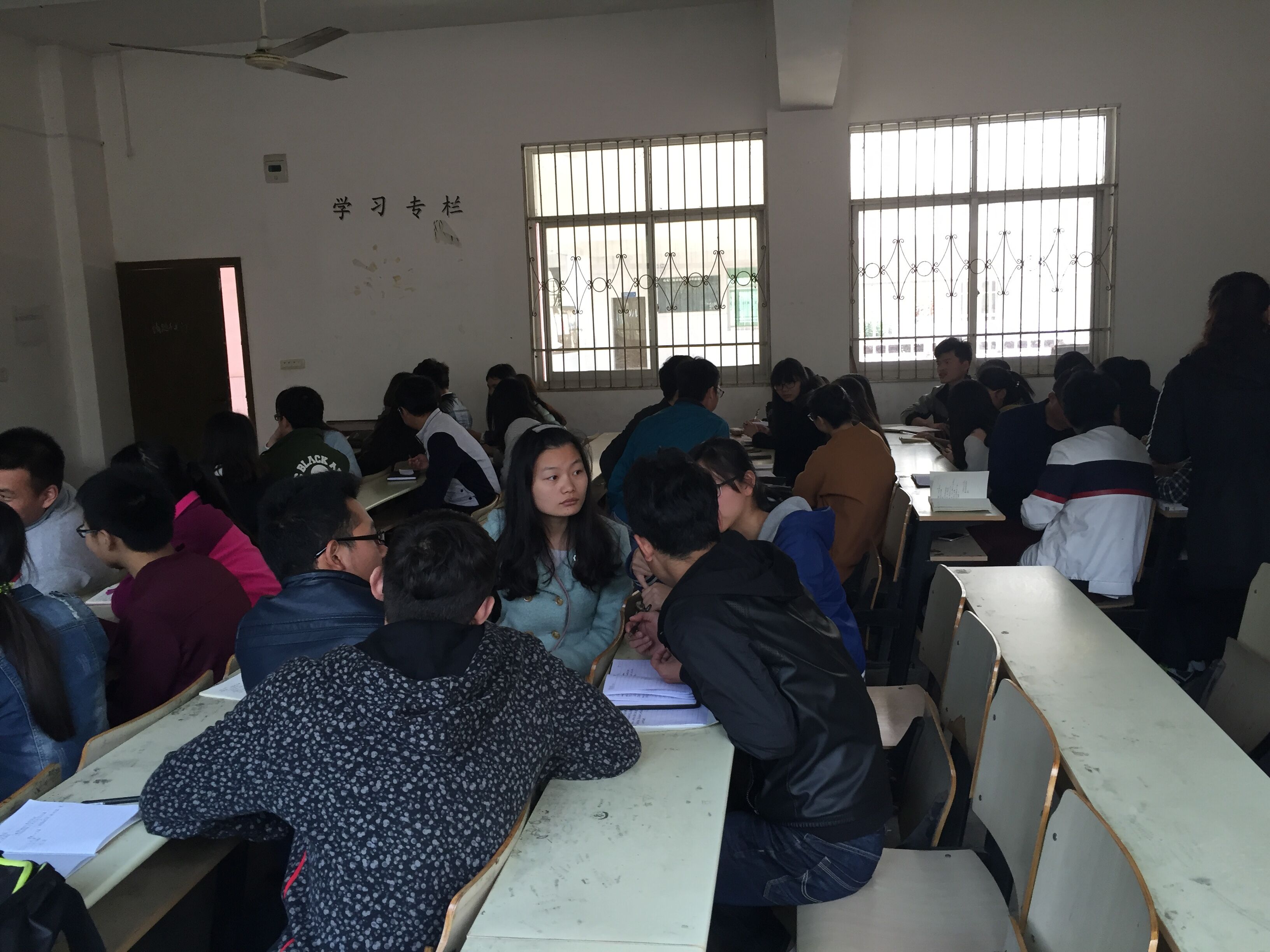 讨论会开始,首先由主持人孙佳佛阐述了本次讨论会的意义、目的,并简单的介绍了会议流程。接着由朱昊发言,浅谈“一带一路”政策,随后,王鹏宇发表了自己对“两会”中延迟退休政策的见解。其他入党积极分子也踊跃发言,对“两会”中自己了解的问题发表了自己的看法。会议中,所有与会人员按座位分为9个小组,各自展开了十分钟的话题讨论,在激烈的讨论结束后,每组的代表分别上台阐述了本组选取话题的讨论结果,也提出了自己的见解。他们的话题涉及到了“延迟退休”、“大气污染治理”等“两会”中的热点话题。