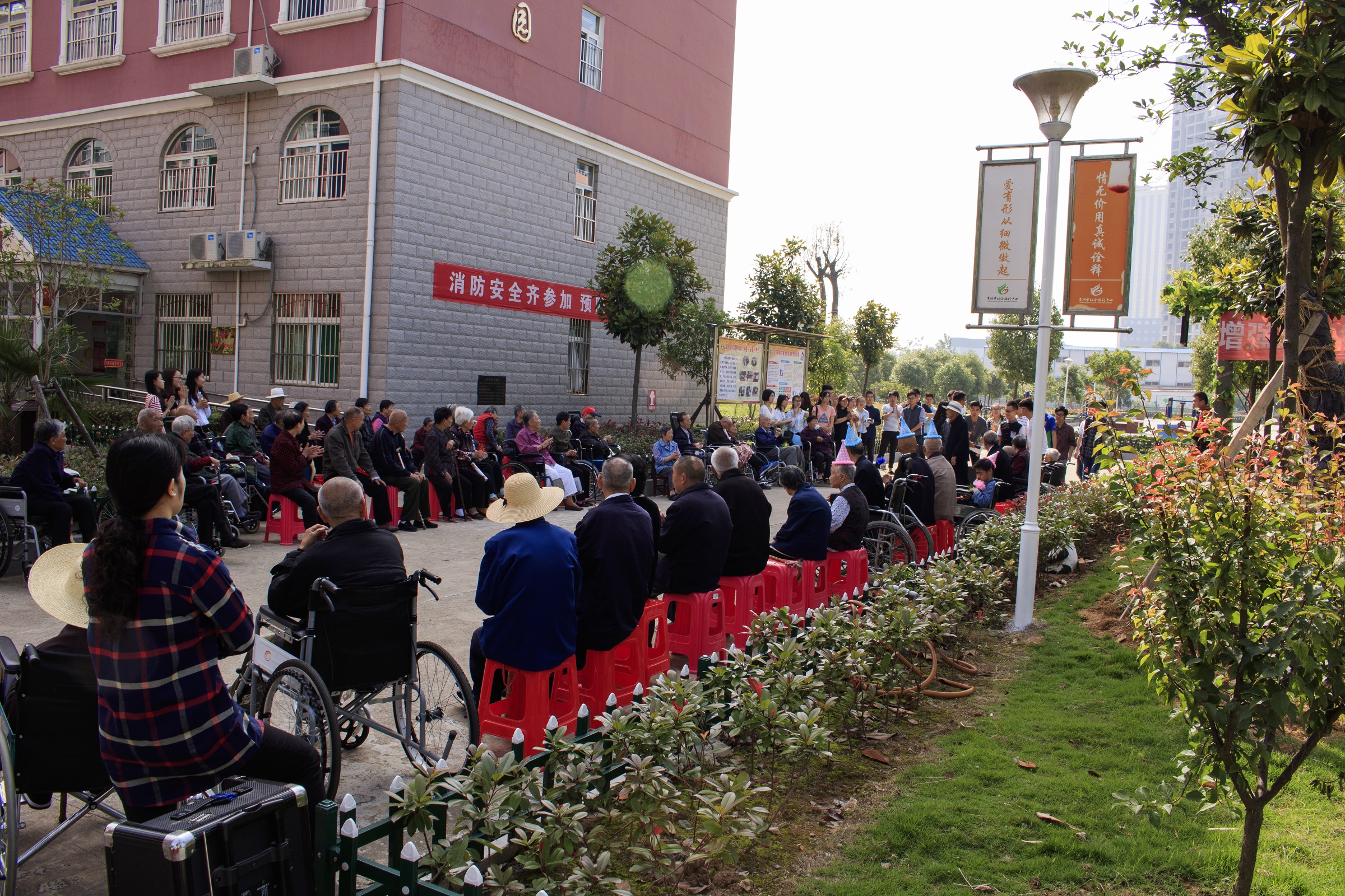 8点30分我们到达福利中心,与福利中心秦老师接恰后,志愿者们有序的进入福利中心。有文艺表演节目的同学开始准备,其他志愿者与陆续到场的爷爷奶奶们面对面进行了交流。期间,金老师和公司志愿者们为过生日的十位老人送上了手工制作的丝网花来表达祝福。第一个节目《河床》拉开了文艺表演的序幕,随后的舞蹈表演、魔术表演、歌曲及黄梅戏表演给爷爷奶奶们带去了欢乐,也带来了他们的阵阵掌声和笑容。
