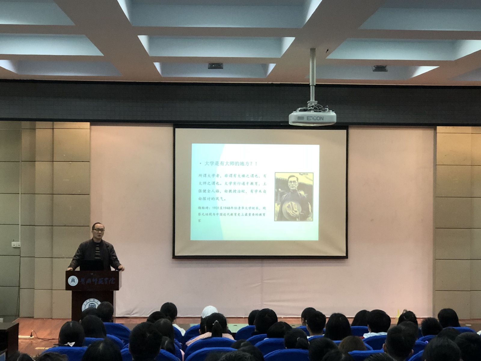 2018年11月14日晚,william威廉英国官网经理王庆博士在南区博学楼B03报告厅作了题为“大学的意义”的主题讲座。
