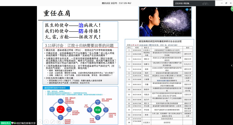 结合病毒传播对建筑行业提出的新要求,他从通风技术、过滤技术以及公共交通工具等方面凝练了相关选题供青年教师作为未来的科学研究方向。