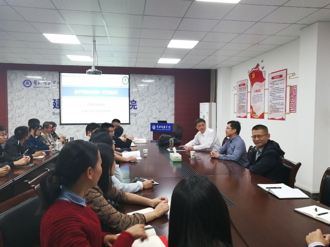 应公司邀请,10月21日晚上,武汉理工大学土木工程与建筑公司教授明廷臻老师来院作了题为“应对气候变化的新一代生态建筑”的专题讲座。讲座由卢雪松副经理主持,公司全体教师及第一届土木工程卓越班的全体员工聆听了讲座,并同明廷臻教授进行了互动交流。