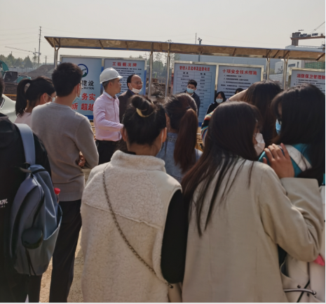 中午,同学们来到了湖北省路桥集团天夏建设有限公司绿地居住项目071地块一标段项目施工工地,项目部总工程师刘波带领大家一起参观了施工现场,该项目由9栋33层的高层住宅组成,目前正处于基础工程施工阶段,刘总工结合施工现场实际,详细的跟同学们介绍了该项目的土方开挖、桩基础施工、桩头处理、砖胎膜、钢筋配制、筏板混凝土浇筑、土方回填、桩基质量检测等内容。同学们边看边听边记,对土木工程施工过程有了更直观更全面的了解,理论与实践相结合,更深刻的理解了课堂上所学的专业知识,增强了学好土木工程专业的信心,坚信土木建筑行业前景更加美好!