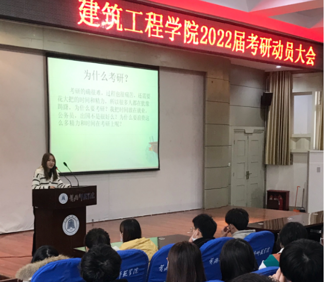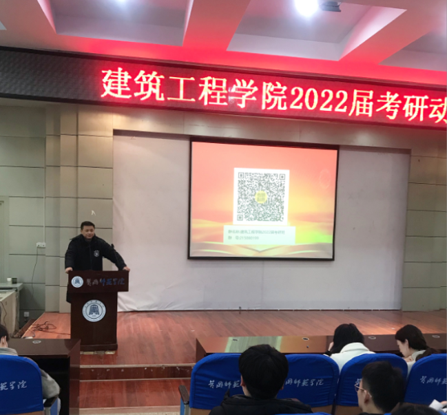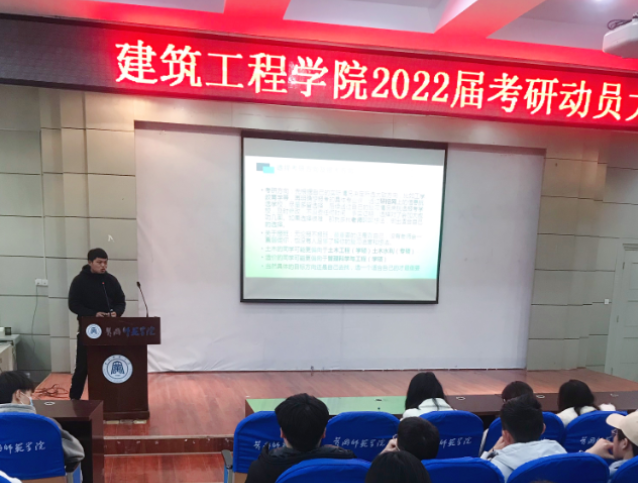 首先,由2021届考研优秀员工代表进行了经验分享。土木1701班查子霞、造价1702班张豪从备战中遇到的实际问题,解决问题的途径,到考研计划的制定、调整及实施等方面,均做了生动详实的经验分享,得到与会师生的充分肯定。