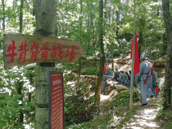 上午十时许,全体党员抵达英山长征精神体验园。长征精神体验园是通过当年红二十五军长征的路线,现用五公里的缩略路线,象征性的还原当年长征的地理环境和战斗情景。展示了从英山陶家河到陕北吴起镇沿途的艰难险阻,再现了长征路上“血战牛背脊骨”“袁家沟口大捷”等重大历史事件场景。