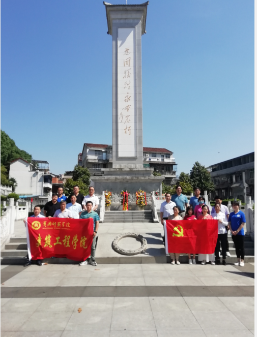 上午九时许,全体党员在英山烈士陵园瞻仰英雄纪念碑,在纪念碑前默哀三分钟,并面向纪念碑高举右手庄严重温入党誓词。