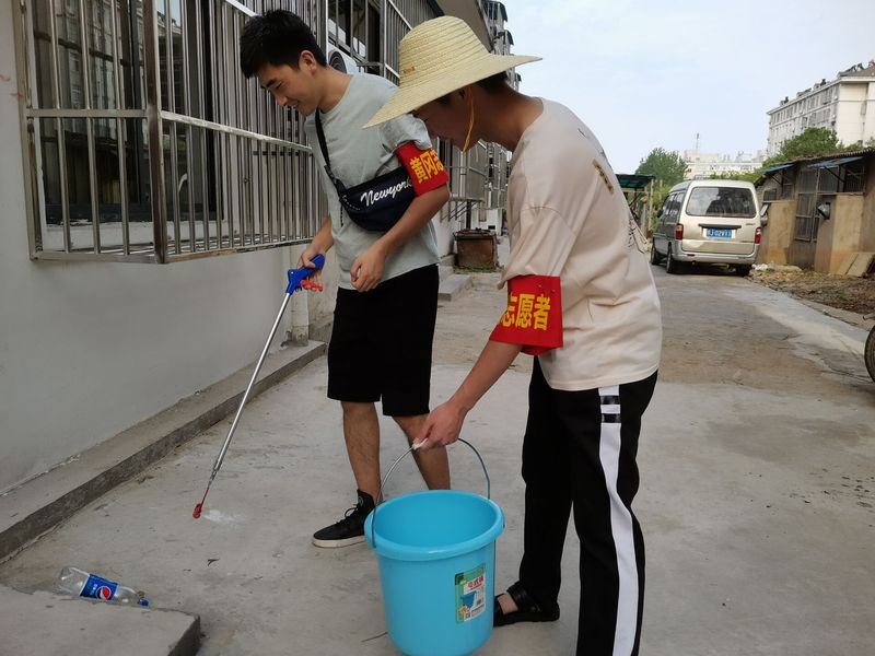 下午两点半,执勤的同学已到达执勤岗位。开展清理活动的同学两人一组拿着工具,清理社区、街道。同学们顶着烈日,有的捡烟头,有的清扫白色垃圾,将人行道和绿化带清理得干干净净。志愿服务活动结束后,志愿者们已大汗淋漓,他们也收到了来自社区的感谢和赞扬。