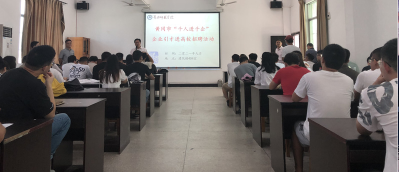 图1、2 黄冈市人才服务局携本地企业代表(山河集团、伊利股份有限公司)来校招聘