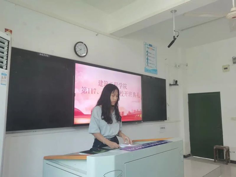 此次团校开班典礼分为四个部分:首先,由团员代表李苒同学上台发言,他借中国共产党成立100周年之际,呼吁大家在此次团校培训上树立理想信念、把握学习机会、争做优秀学员。紧接着,组织部干事陈影对团校期间的考核要求和纪律进行说明,强调了团校的重要性、严肃性。之后,团委书记金晓刚老师借刚结束的军训表达了对团员们的期望,希望大家以军训中坚持不懈的精神对待团校的学习,要通过团校学习提升个人思想修养;作为一名优秀的共青团员,要积极参加团组织的活动;作为团校学员,将自己视为其他人的榜样,努力提升自己,并预祝大家在此次团校学习中取得优异的成绩。最后,主持人宣布活动结束。