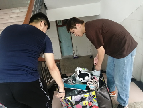 与此同时,公司19名员工男党员也以他们不同的方式向中国共产党成立100周年献礼。为更好地班级建设和公司文化的沉淀,36位女员工需搬迁至公司员工公寓集中住宿。然临近期末考试周,寝室搬迁工作时间紧、任务重,公司全体员工男党员主动请战,在公司党总支副书记管中柱,员工支部书记金晓刚、孙晓丽和胡琴老师的带领下全程投入,充分发挥了党员在为师生办实事中的先锋模范带头作用。在整个搬迁过程中,党员们跑上跑下竭尽所能帮助同学们搬运行李。尽管天空还飘着雨,他们一刻都不曾停歇过。辛苦的工作让他们的身体很疲惫,但是在他们身上都体现出了奉献与担当。楼上楼下往返几十趟,已经无法分辨到底是雨水还是汗水湿了他们的头发和衣服,彰显着新时代党员的责任和担当。