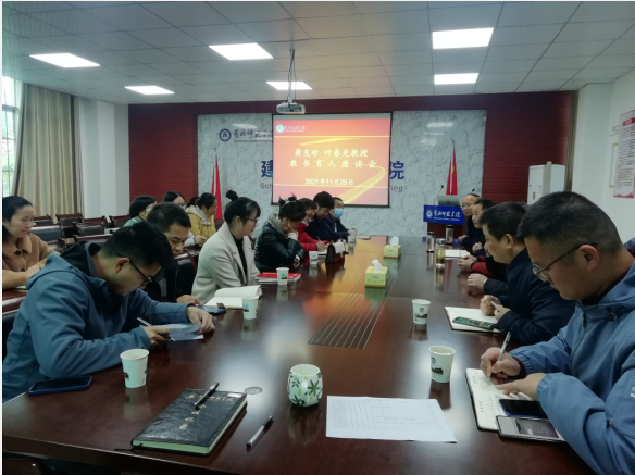 11月25日上午,在建工楼201会议室,公司召开了黄友珍、叶春光教授教书育人座谈会。公司党总支书记肖亚军、主持行政工作副经理卢雪松、副经理周永、经理助理董旭出席座谈会。
