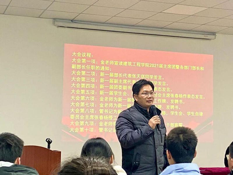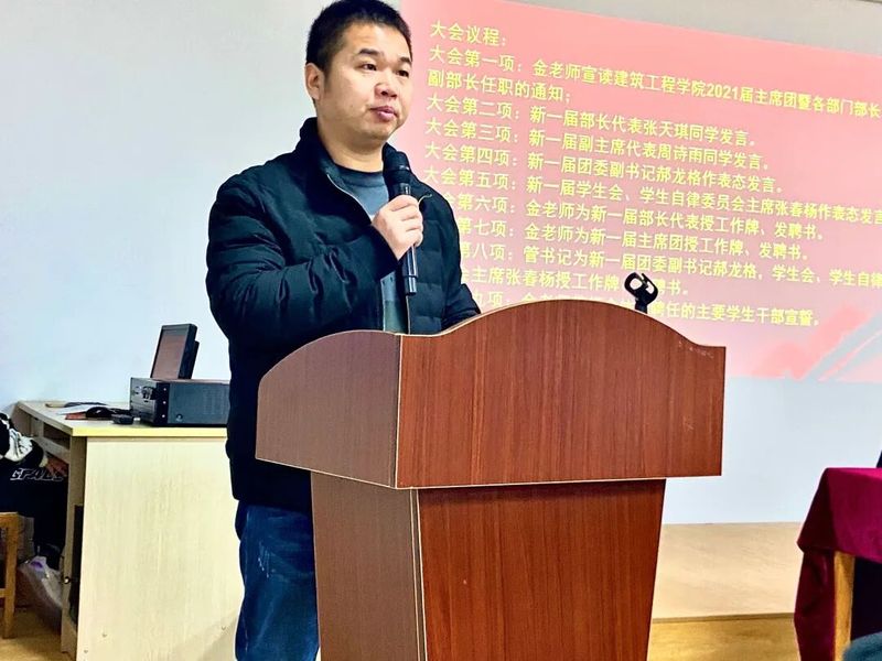 最后,管书记讲话。他对21级新生能积极加入员工干部队伍表示衷心的感谢。他希望全体员工干部要有服务意识,贯彻落实服务同学的宗旨,坚持从同学中来,到同学中去。员工会干部要提高自己的服务水平,不断增强自己的能力。员工会是一个大家庭,要有团队协作精神。