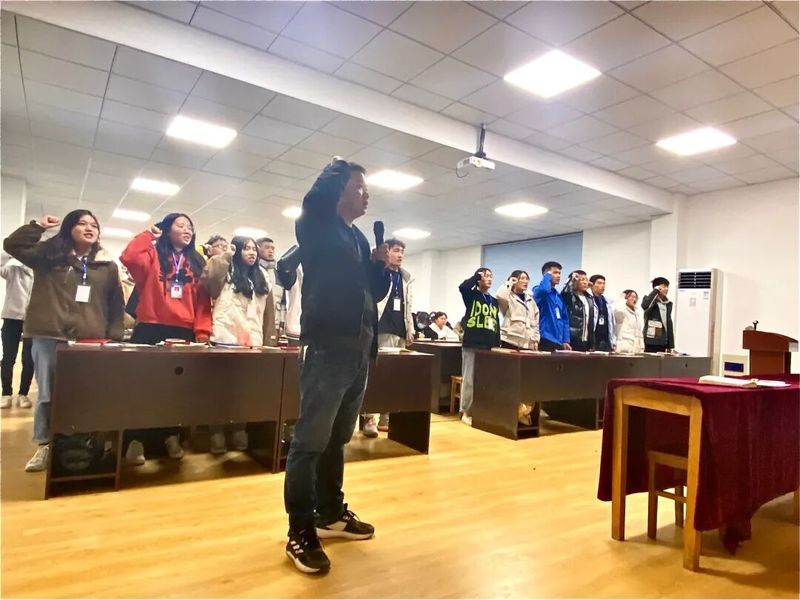 3# 金老师和管书记为主要员工干部代表授工作牌、颁发聘书。金老师带领全体新一届主要员工干部宣誓。