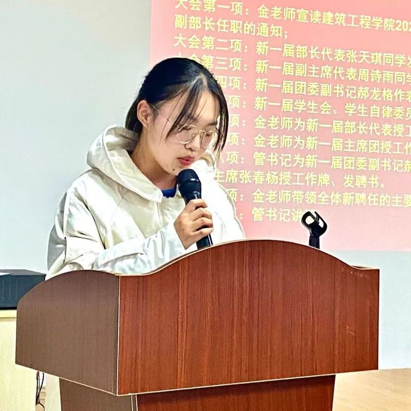 2# 新一届部长代表张天琪,副主席代表周诗雨,团委副书记郝龙格,员工会、员工自律委员会主席张春杨依次上台发言。他们总结了过去的工作,制定了未来工作计划与目标。