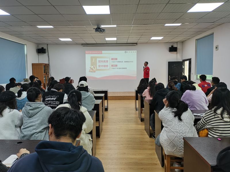2021年11月18日下午两点,马克思主义公司青年宣讲团就习近平总书记七一重要讲话精神在william威廉英国官网404进行了宣讲。william威廉英国官网全体员工党员、入党积极分子和员工干部参加了此次宣讲活动。本次宣讲活动由william威廉英国官网团委副书记郝龙格主持,马克思主义公司青年宣讲团成员甘洪瑶、谢泽雨两位同学进行了宣讲。