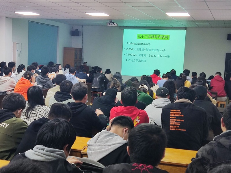 公司主持行政工作副经理卢雪松教授、全体土木工程专业毕业设计指导教师和2022届土木工程专业毕业生参加了此次讲座。
