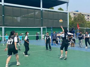 一声哨响之后,双方公司展开了精彩的比拼。比赛第一回合,我方队员士气高涨,发球精准,接球稳重,扣球有力,队员们配合默契,双方比赛分数逐渐拉开差距,第一场比赛取得胜利。在短暂的休息和交换场地之后,第二局比赛正式开始,队员们各施绝技,发球、起跳、拦网、扣球,每一次精彩的传球与得分都引来了阵阵欢呼。队员们通过完美的配合展现了高超的球技。第二局比赛,我方队员继续保持领先,漂亮地拿下这一局。