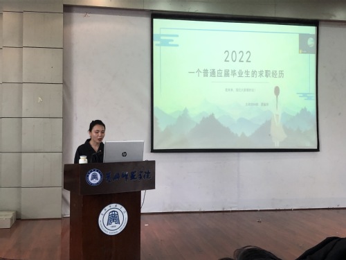 首先,辅导员胡琴用数据来说明2022年就业人员数量急剧增加,就业岗位供给收紧,疫情封校封城等政策导致毕业生求职和企业招聘双向受阻,就业结构性矛盾突出,就业形势可谓异常严峻。胡琴老师鼓励同学们越是困难时候,越是要坚定信心,积极主动求职。为了让同学们摆正就业心态、树立就业信心、掌握求职技巧,摈弃慢就业,土木2004班夏丽萍和造价1802班马晓丽2位同学分别从就业心态调整、求职技巧等方面做了精彩分享。随后胡琴老师鼓励同学们要抓住春招的尾巴,拓宽就业信息获取渠道,积极主动应聘,争取早就业。胡琴老师希望同学们认真关注公司、公司以及“24365”校园招聘服务平台等发布的就业服务信息,充分了解、掌握就业资讯。