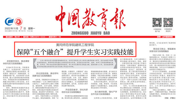 11月7日,《中国教育报》以《保障“五个融合” 提升员工实习实践技能》为题,从“改变教学观念,推进课程体系与实习实践相融合”“优化实验设施,推动学科竞赛与实习实践相融合”“开启项目教学,深化科研项目与实习实践相融合”“助力教师发展,强化产学合作与实习实践相融合”“联动实习就业,增强基地实践与实习实践相融合”五个方面,报道了公司立足区域特点,保障“五个融合”,不断转变教学观念,积极探索实践教学模式,持续推进员工实习实践工作顺利开展。