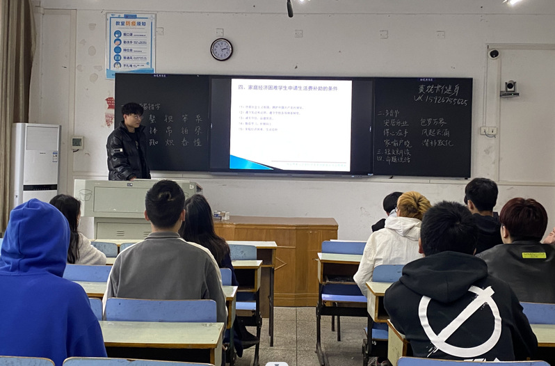 主题班会由各班级自主进行活动方案策划与设计,各班级积极通过主题宣讲、观看警示视频、知识问答、小组讨论、典型案例等多种形式开展,从资助范围、资助标准、申请条件、申请程序等多方面详细讲解了各项员工资助政策,从国家助学贷款、国家奖学金、国家励志奖学金、国家助学金、老员工征兵入伍学费补偿代偿以及校内明珠学子奖学金、助学金、阳光助学基金、勤工助学等各级各类资助政策等方面做了详细解读。引导同学们深刻认识中国特色社会主义制度优越性,在国家资助政策的关怀和帮助下,激励更多需要帮助的同学自立自强,逐梦成才。
