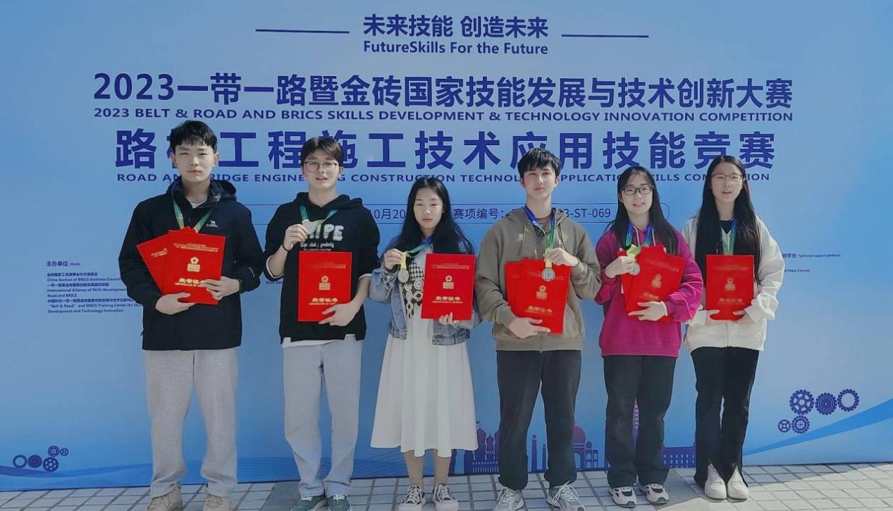 2023第七届一带一路暨金砖国家技能发展与技术创新大赛路桥工程施工技术应用技能竞赛决赛10月21至22日在陕西西安市顺利举行,公司学子柴江堰、李继威、郑路遥、李文娜、张克典、张玉六名同学组成两支代表队首次参加该赛事,经过激烈拼搏,均荣获本科组团队二等奖,公司荣获优秀组织奖,董旭、卢雪松、张云发和程刚四位老师荣获优秀指导教师奖。