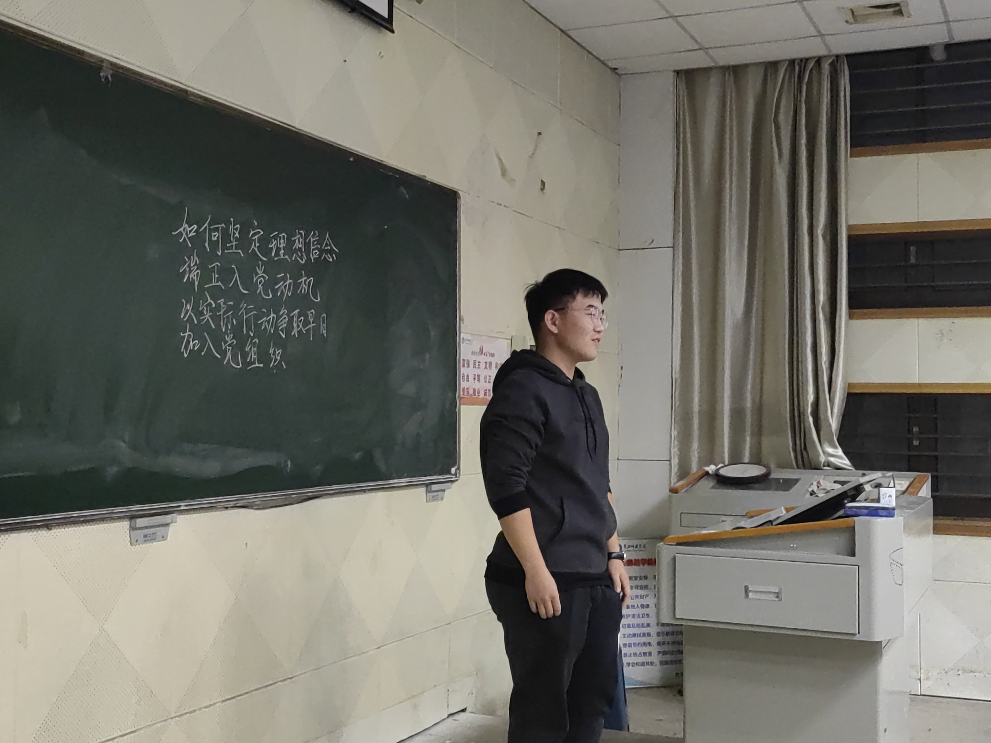 此次讨论课的主题为:如何坚定理想信念,端正入党动机,以实际行动争取早日加入党组织。学员们围绕此次讨论课的主题依次进行了发言。