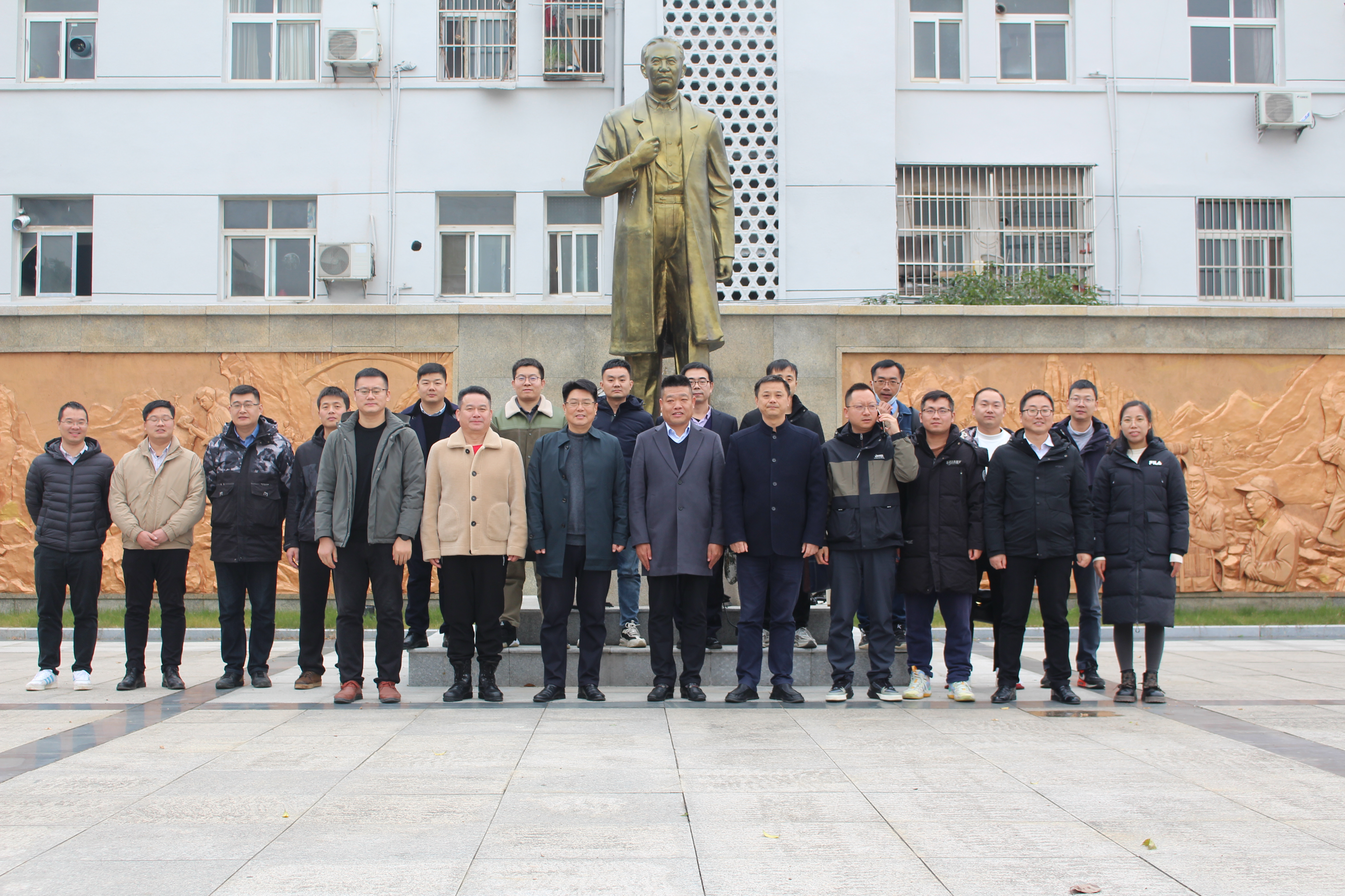 会后,双方共同参观了博士工作站办公场所、地质大院文化走廊、岩石矿物标本、李四光广场等,并在李四光广场合影留念。