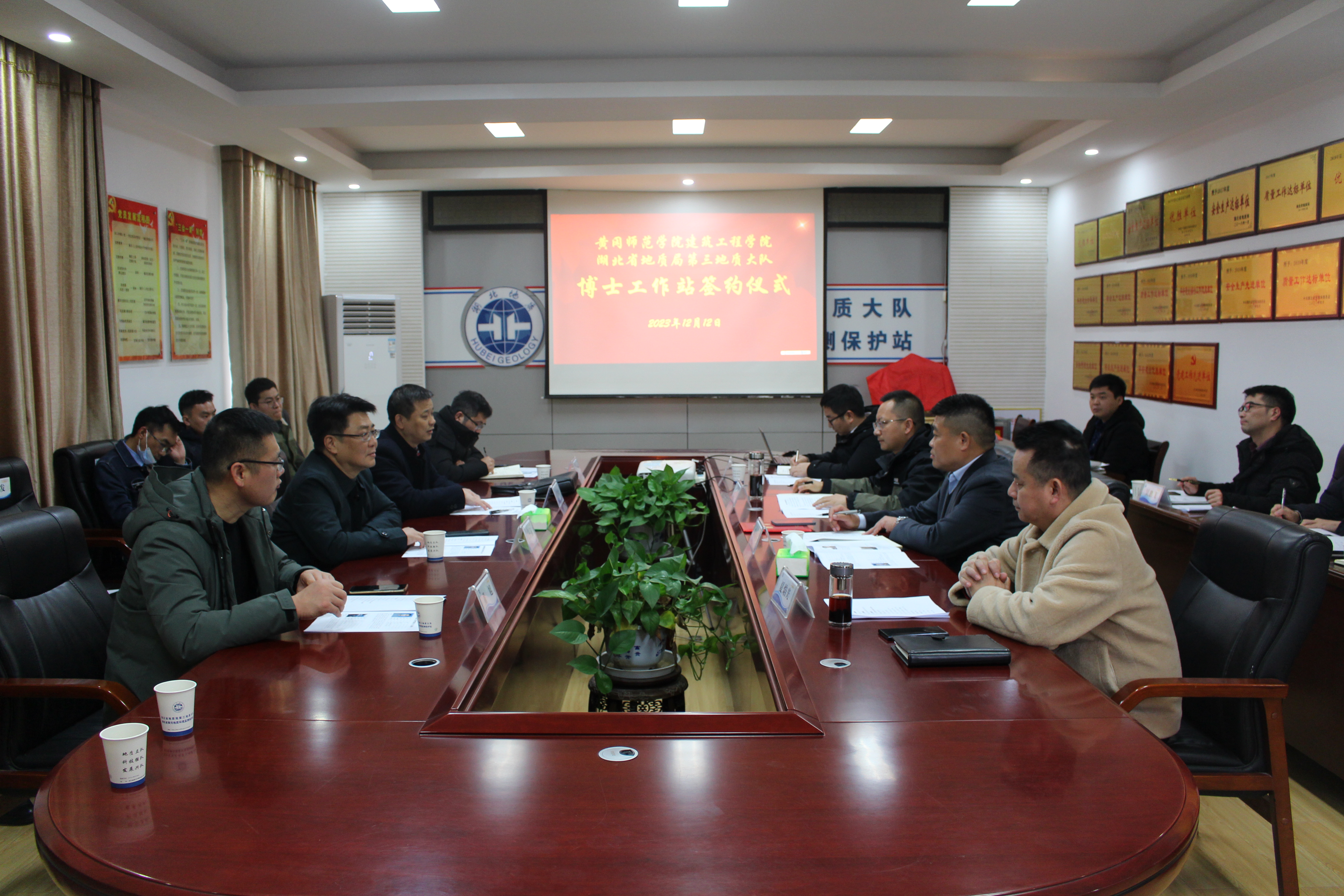 湖北省地质局第三地质大队总工办、工会办、地质环境中心、地质勘察中心、地灾防治中心负责人,公司工会主席、系主任、实验室主任、博士代表等参加了签约仪式。