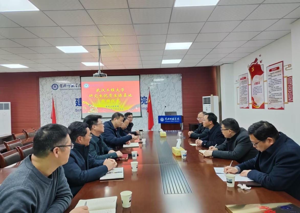 为提高公司研究生通过率与培养质量,2024年1月14号上午,武汉工程大学土木工程与建筑公司主持行政工作的副经理刘章军、岩土与地下工程系主任王亚军、建筑工程系党支部书记刘胜兵等一行来访公司,共同举行研究生优质生源基地授牌仪式,并进行交流座谈。会议由经理卢雪松主持,公司全体班子成员参加。