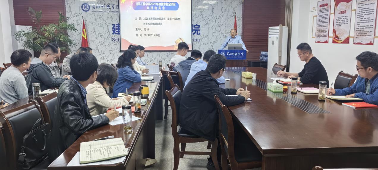11月14日下午,公司在建筑楼二楼会议室召开2025年度国家基金项目申报动员会,公司经理卢雪松主持会议,副经理周永、经理助理董旭、黄钢,公司全体专任教师参加会议。
