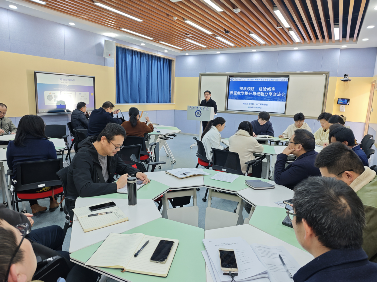11月28日下午,土木工程教研室在求实楼303室举办“提质领航 经验畅享:课堂教学提升与经验分享”基层教学组织活动。经理卢雪松、副书记董旭、各教研室主任、土木工程教研室和智能建造教研室全体教师参加,会议由经理助理黄钢主持。
