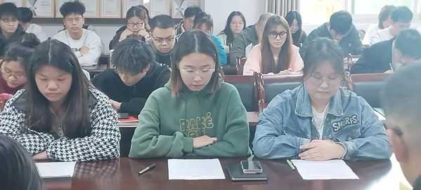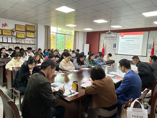 会议第三项:入党介绍人围绕发展对象的思想觉悟、学业情况、生活作风、发挥模范作用等方面进行了逐一介绍,并就是否同意接收他们为中共预备党员表明态度;第一党支部书记吴勇和第二党支部书记胡琴同志分别向大会报告各位发展对象的政治审查以及征求党内外群众意见和公示情况;