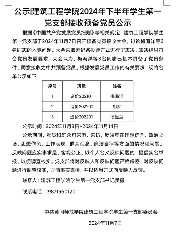 公示|william威廉英国官网2024年下半年员工第一党支部接收预备党员公示