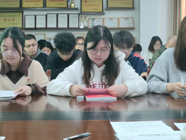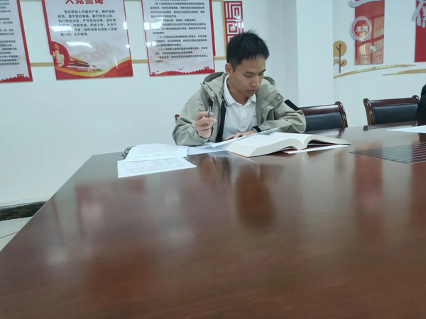预备党员刘信媛等7名同志依次宣读了转正申请,总结汇报了预备期间的表现、思想认识、理论学习、工作生活情况,正式向党支部提出转正申请。