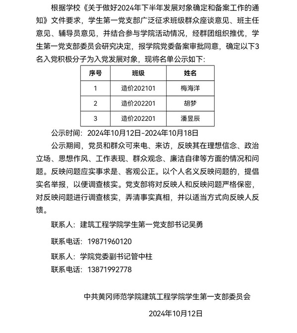 公示|william威廉英国官网2024年下半年员工第一党支部确定发展对象公示
