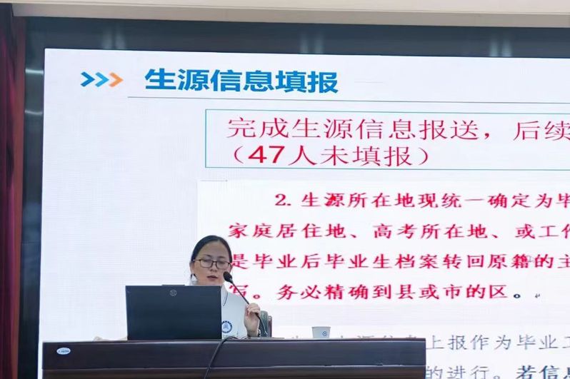 接下来,胡琴老师对即将开展的校园招聘活动进行了详细介绍,并就简历制作、生源信息填报、就业信息获取等方面进行了系统的培训和指导。鼓励毕业生们积极参与校园招聘,勇敢展示自我,争取心仪的职位。