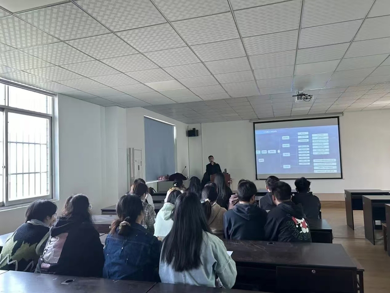 总经理熊浩从公司文化、工作环境、招聘岗位、薪资待遇等方面进行宣讲。他希望同学们明晰就业形势,端正就业心态,积极应聘,诚挚邀请同学们能够加入九通衢检测技术股份有限公司中南分公司。
