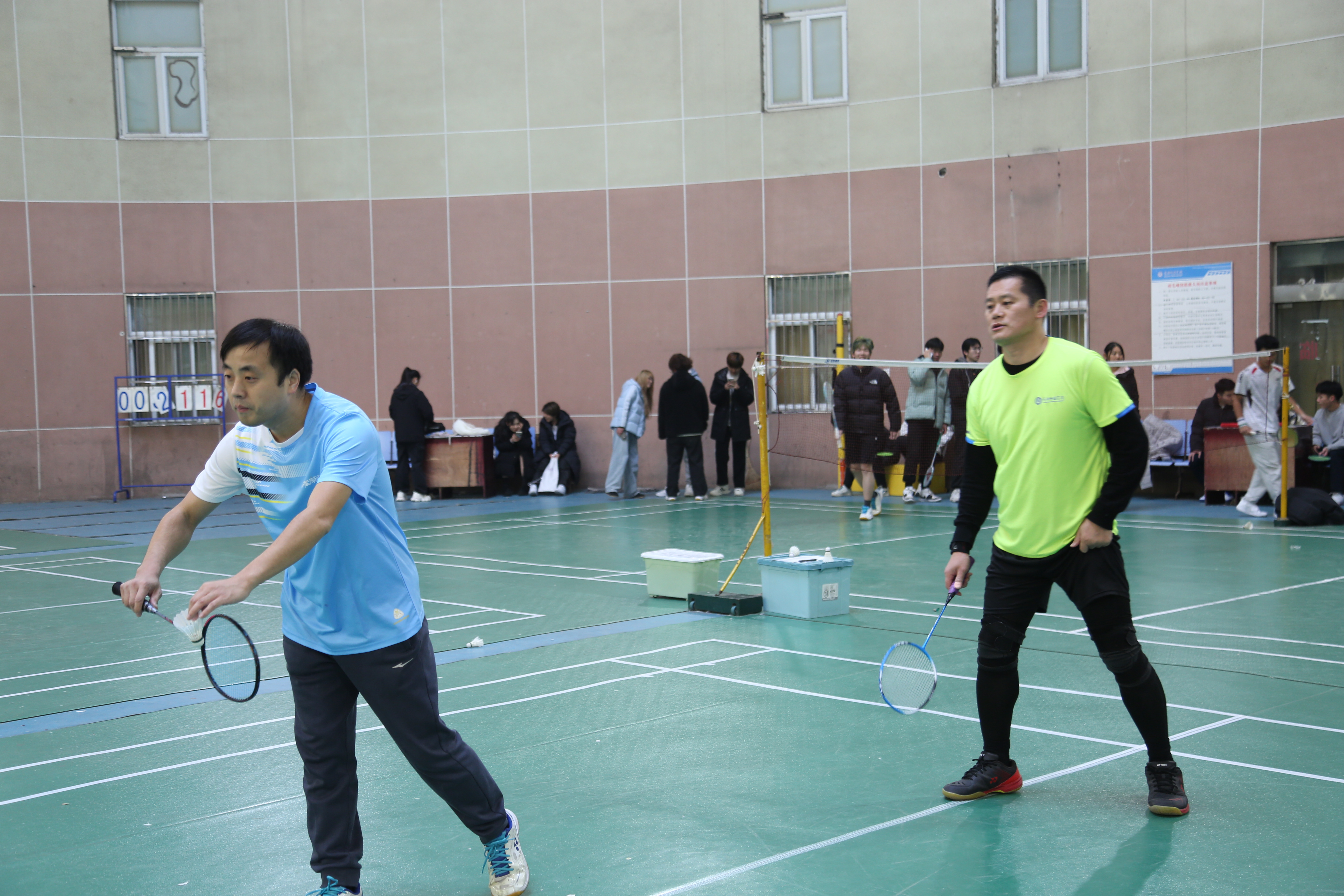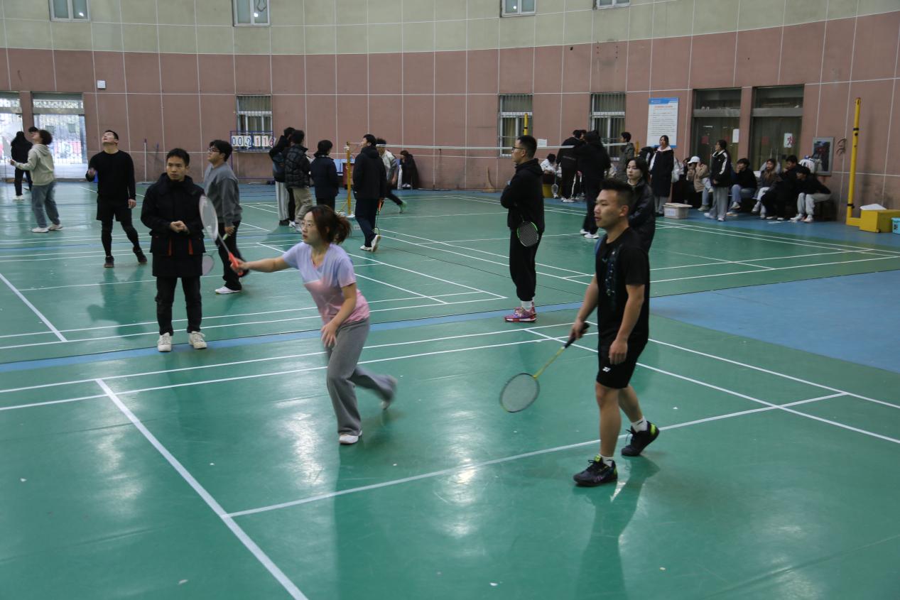 本次比赛吸引了全院十四支队伍,共60余名羽毛球爱好者参与,涵盖了男单、女单、男双、混双等多个项目,并通过淘汰赛的形式决出团体冠军。