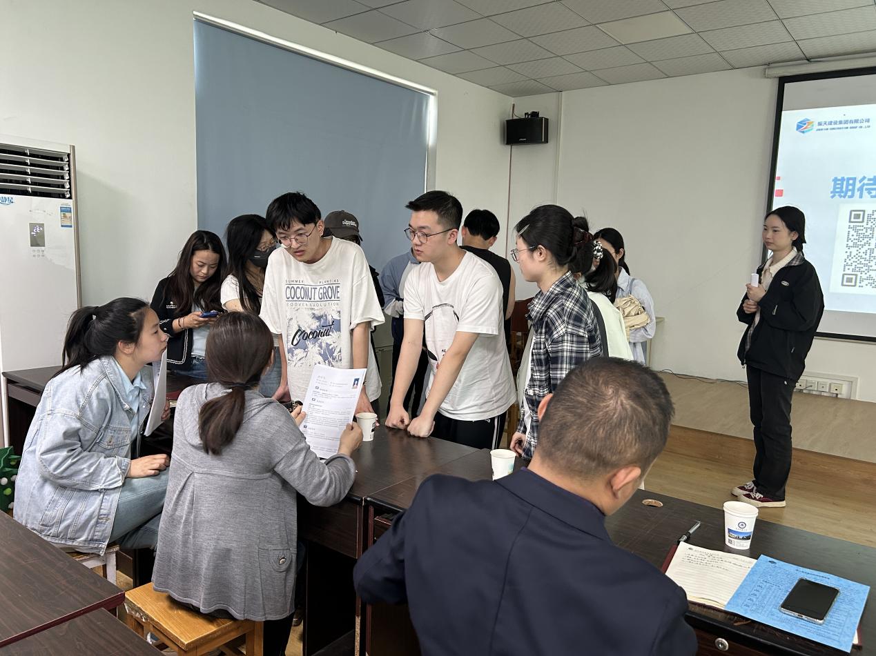 宣讲结束后,现场进入互动交流与简历投递环节。毕业生们手持精心准备的简历,积极与企业招聘人员交流沟通并投递简历,现场气氛热烈而有序。