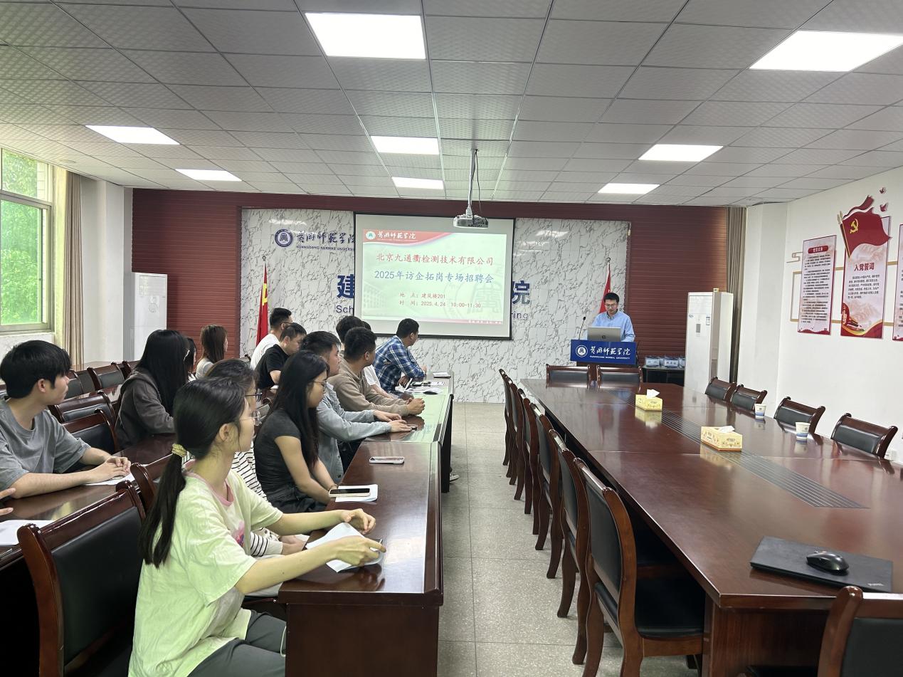 招聘会上,公司副总经理夏季和检测部经理熊涛进行了全面且详细的宣讲。他们从公司文化讲起,分享了公司积极向上、团结协作的工作氛围;详细说明了招聘岗位的具体职责和要求;并明确了具有竞争力的薪资待遇。两位经理真诚地希望同学们能够清晰了解当前的就业形势,端正就业心态,积极主动应聘,诚挚邀请同学们加入北京九通衢检测技术股份有限公司中南分公司,与公司共同成长。