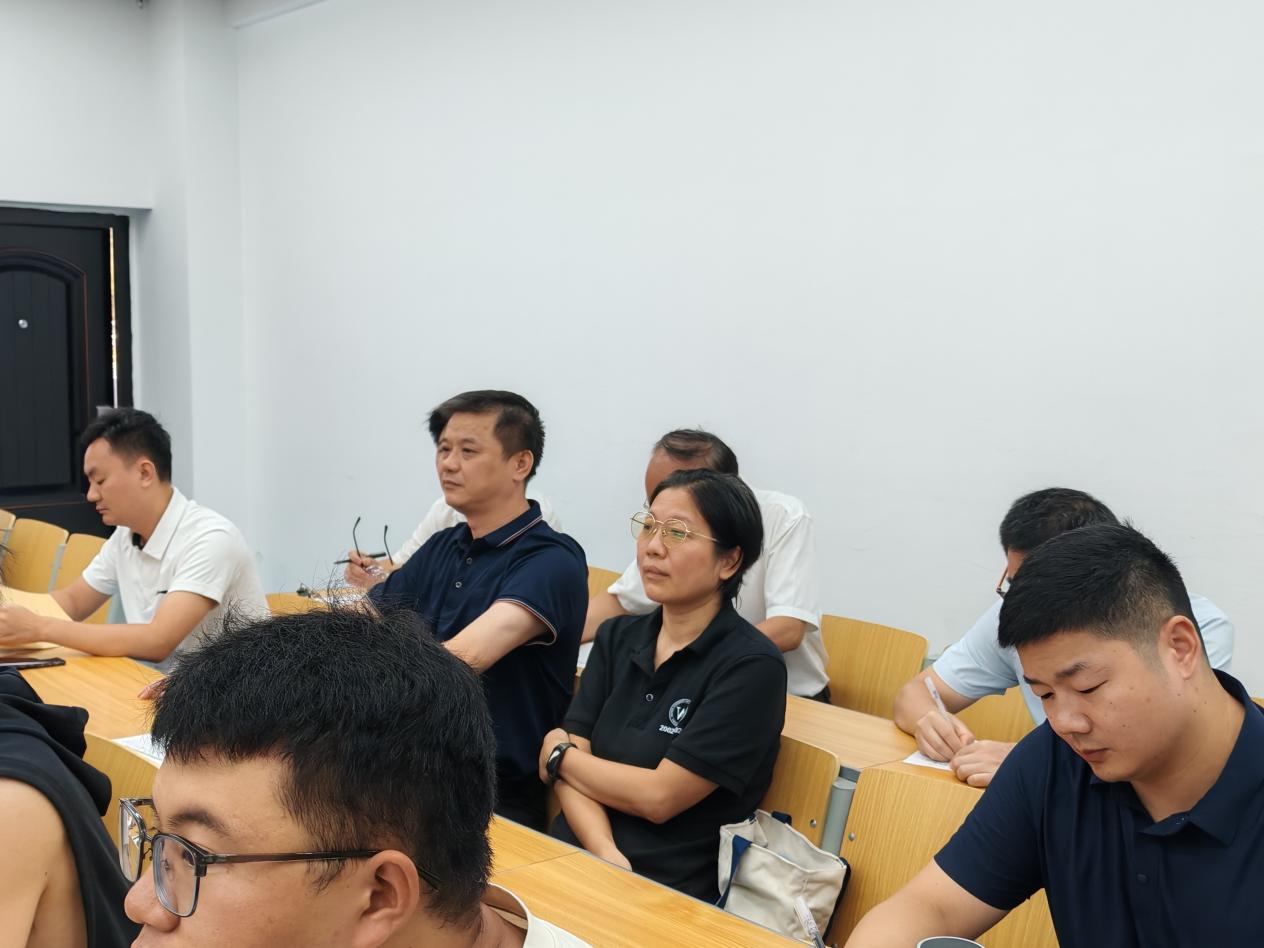 课堂上,授课教师吕杨以“工程项目管理学科的发展历程”为切入点,结合国内外经典建筑案例、行业前沿技术动态,系统讲解了课程的核心知识点。胡常委全程专注聆听,认真记录教学要点,并不时与身边员工轻声交流,询问他们对课程内容的理解程度。员工们也都精神饱满,认真听讲,积极与教师互动,课堂气氛活跃。